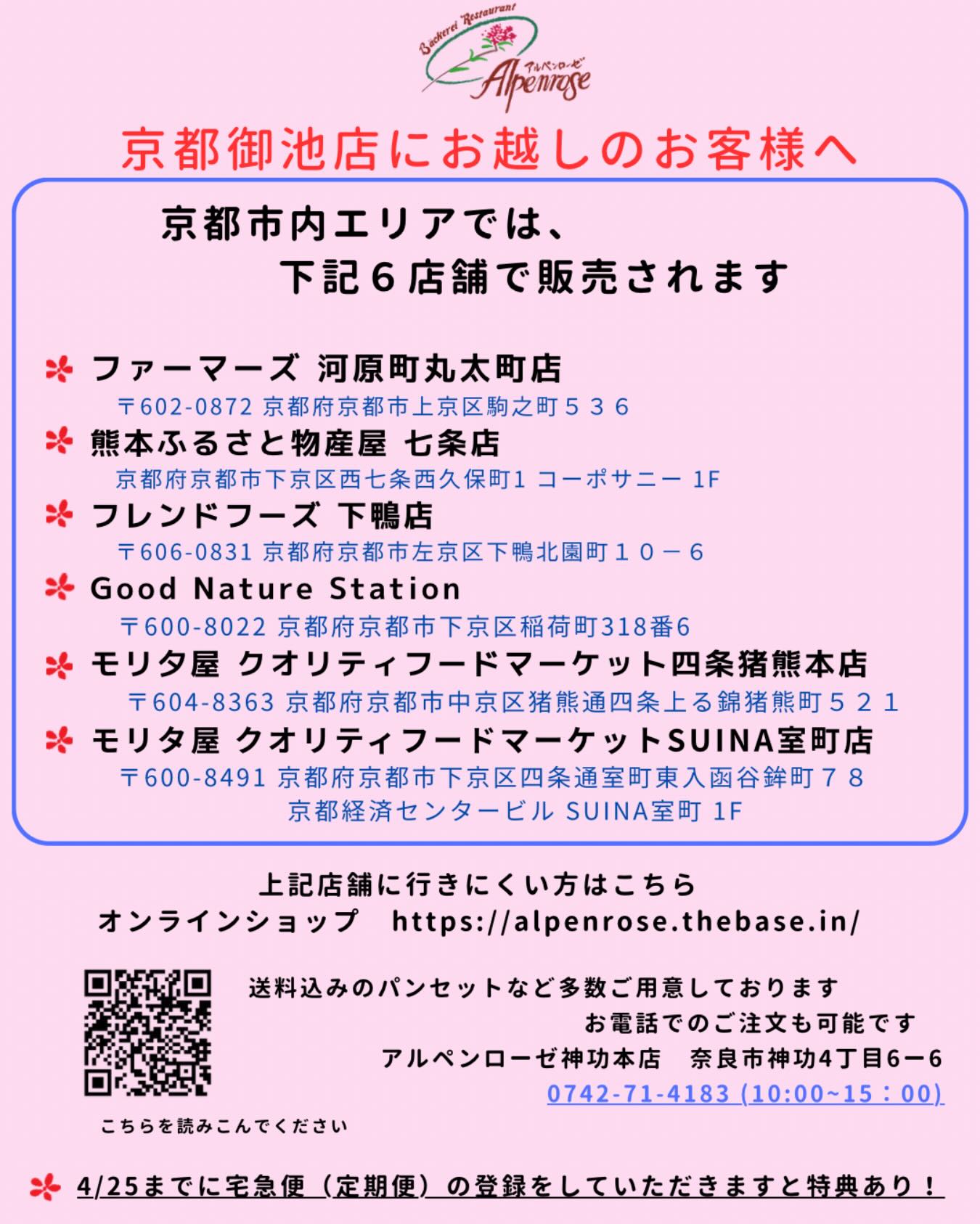 それに伴い、誠に残念ではございますが、京都御池店での営業は4月25日(土)をもちまして終了とさせていただくこととなりました。