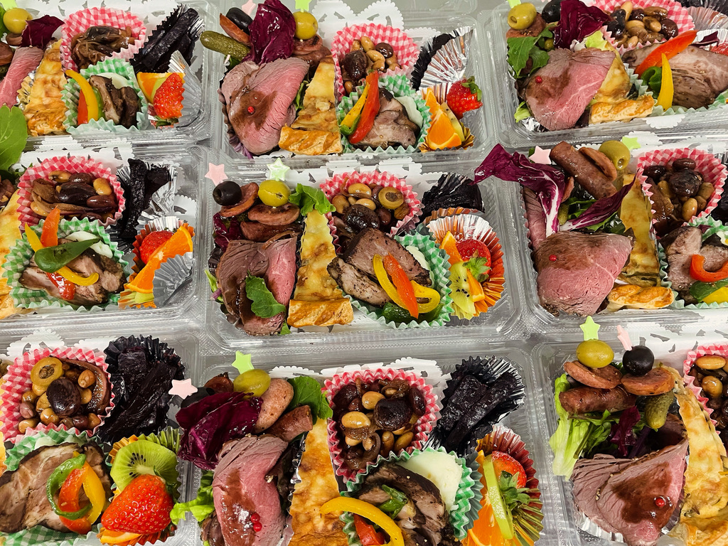 オードブル盛合せ・ホームパーティー用サンドイッチ・デリ・お弁当に加え、アルペンローゼの様々なアイテムを詰め合わせにしたデリBOX(1.300円〜)もご好評をいただいております。